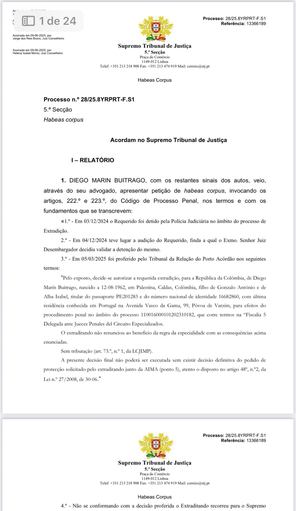 La defensa de Marín en Europa, liderada por el abogado John Villamil, logró que Marín fuera liberado en Portugal bajo el recurso de habeas corpus, argumentando “afectaciones a derechos fundamentales” en el proceso de captura. El Tribunal Supremo de Justicia de Portugal atendió la solicitud y ordenó su libertad, a pesar de que había un proceso de extradición hacia Colombia en marcha.