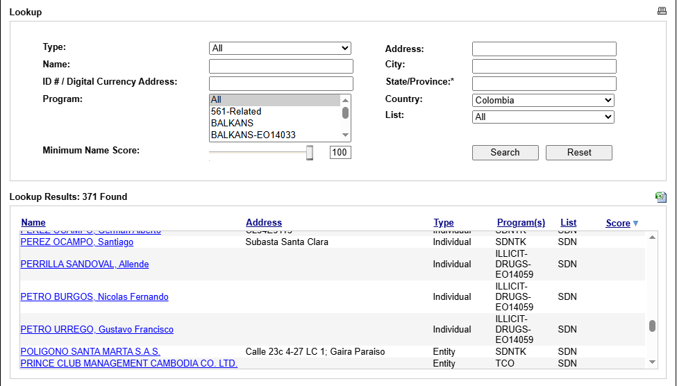 En la Lista Clinton, que puede ser consultada en la página web de la Oficina de Control de Activos Extranjeros (OFAC), fueron incluidos Gustavo Petro, Nicolás Petro, Verónica Alcocer y Armando Benedetti.